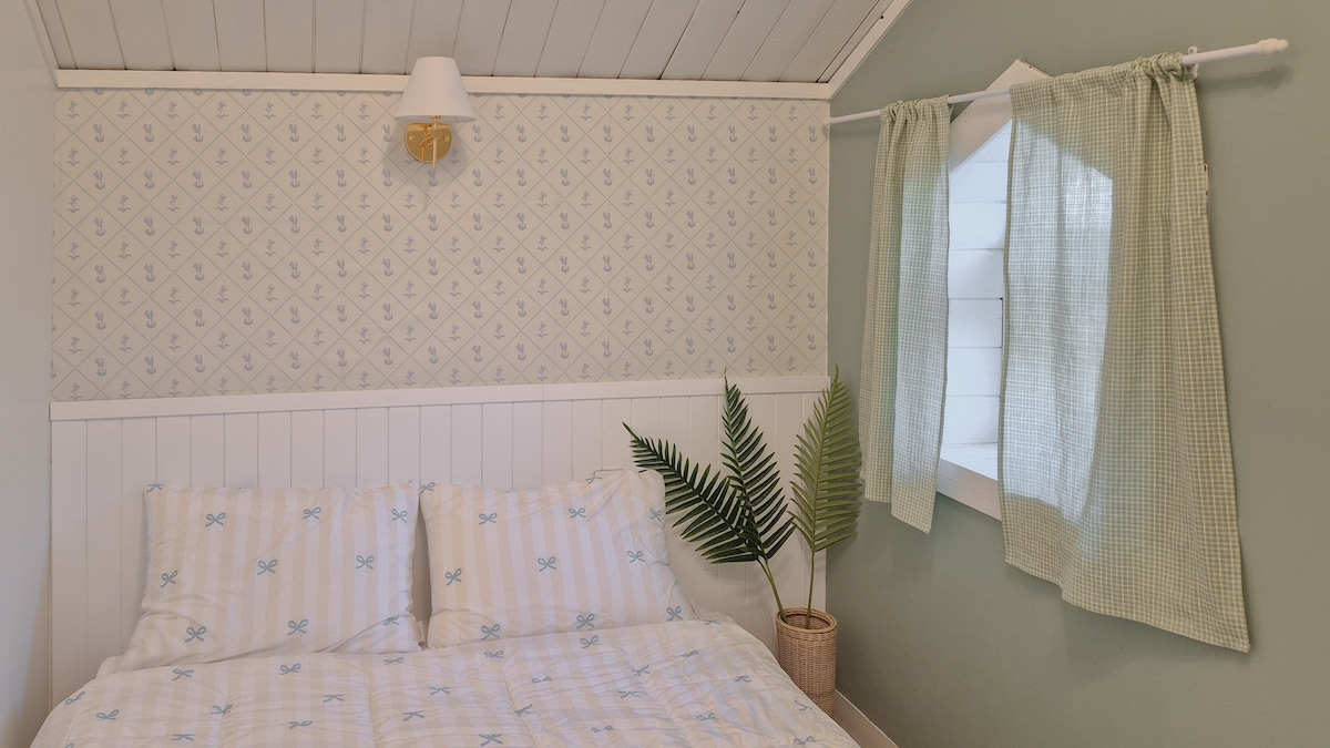 Y1 号薄荷色和奶油色阁楼客房(早午餐、户外烧烤、篝火、投影仪、音响)