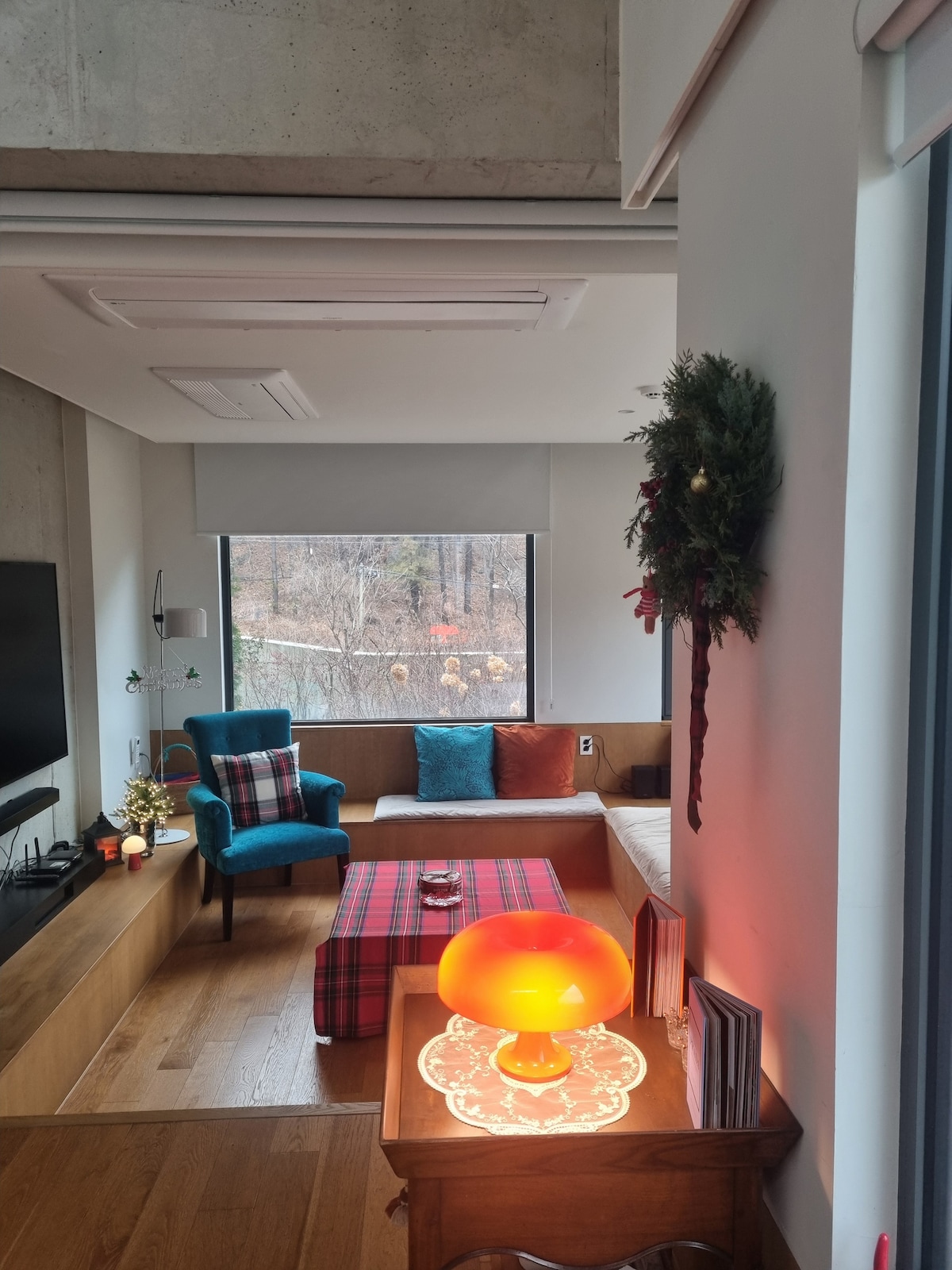 서울 근교의 평온한 전원주택 마을에 위치해 있는 300평대 독채입니다. 남향을 향해있어 아침햇살이 아주 따사롭게 비춰줍니다. 봄 벚꽃, 여름 계곡, 가을단풍, 겨울 설경, 사계절 최적의 숙소입니다 청결하고 미니멀한 숙소를 제공하고자 당분간은 게스트 최대 인원수를 3인으로 제한하고자 합니다. 2세 이하 영유아와 함께 방문시 최대 4인입니다. 게스트분은 독립적으로 2층집 주택의 1층전부와 정원을 전용으로 이용하 실 수 있습니다. 주인댁은 2층에 거주하시며 들어가는 입구가 분리되어 있어 프라이빗한 시간을 보내실 수 있습니다. 조용한 주택들이 모여있는 동네여서 평온한 휴식 시간을 즐기실 분들에게 잘 어울릴 만한 숙소입니다. [바베큐] 스탠딩 바베큐그릴 + 석쇠 준비 가능하며 추가비용은 1만5천원 입니다. [벽난로] * 벽난로는 기온이 영하로 내려가는 계절부터 피우기 시작합니다. * 벽난로는 화제위험과 실내로 연기가 퍼질수 있어 주인장이 직접피워드립니다~