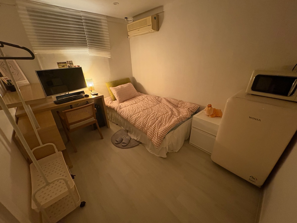- 房间7坪,床135*200,书桌1300*600,可以保管行李 - 具备可办公、可做饭的简单餐具,智能电视 50 英寸 - Wifi, 大衣柜, 大冰箱, 洗衣机, 晾衣架, 吹风机, 毛巾, 纸巾, 水 收费停车 洗发水、沐浴露、护发素、香皂 - 从仁川机场到宿舍正门乘坐机场巴士时56分钟(包括6分钟步行) - 从宿舍可以走着去的地方 大创(6分钟),OLIVE YOUNG(3分钟),时代广场(3分钟),汗蒸房(6分钟) -从宿舍坐地铁去的地方 (附近有 1 号线永登浦站、2 号线文来站、5 号线永登浦市场站) 东大门 DDP(41 分钟),汝矣岛汉江公园(21 分钟),清溪川(41 分钟),景福宫(39 分钟) 弘益大学入口站(24分钟),北村韩屋村(41分钟),明洞(36分钟),圣水洞(47分钟) 文来洞(12分钟),永登浦站是KTX停车站,去釜山等地方很方便。 清晨感受着从窗户照进来的温暖阳光 晚上坐在房间的窗边享受时代广场的夜景