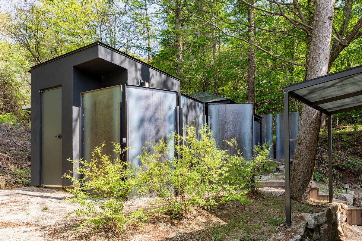 해발고도 400m 숲속에 위치한 cabin입니다. *1개의 M-shelter동과 **2개의 cabin동으로 구성 -It is a cabin located 400m above see level. Seoul is close by *located 40 minutes from COEX,dongdaemun Gate 맑은 공기, 더 맑은 미소?와 고요함, 지져김, 숲의 노래, 수 많은 별과 함께 하실수 있답니다. 또 다큐멘터리 사진을 전공한 주인장의 취향을 느낄수도 있구요. 책 보구, 음악 듣구, 모닥불을 피워도 좋구요...... 가장 좋은건 숲속에서 내려먹는 커피는 일품이랍니다. 하지만 남들에게 좋다구 나에게도 좋은곳은 아닐수도 있어요. 산 높은곳에 위치한 덕에 조금은 불편함도 감수해야 하실수도^^ 입구에 차를두고 300m정도 숲 트레킹을 즐겁게 각오^^해야 하실수도......자연과 음악, 책과 사진을 좋아 하시는 분이시라면 대환영이랍니다
