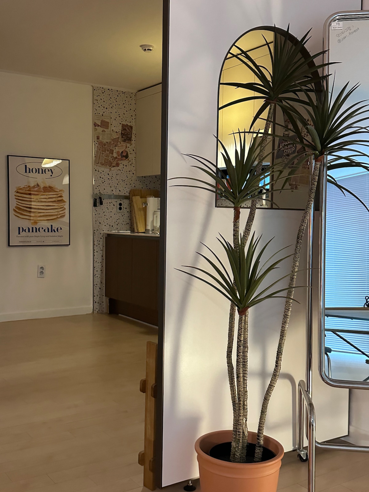 ■ 본 숙소는 미스터멘션 특례를 적용받아 내국인 공유숙박 합법 업체로 등록되어 운영되고 있습니다. ■ 부산의 중심부 서면과 요즘에 핫한 전포 바로 옆에 자리하여 입지적 편리하게 이용하실수 있는 공간입니다.(전포역 1번출구 도보 3분거리) 거실은 음악을 즐길수 있는 턴테이블, 마쉘스피커등이 있는 큰 거실에 시스템선반 위 소품 하나하나가 눈에 들어옵니다. 또한 영화관에 온것같이 큰 화면이 제공되는 빔프로젝터가 제공됩니다.(Netflix,Youtube Premium) 침실공간은 안락함을 제공하기 위해 베이지톤의 따뜻한 분위기입니다. 플레이룸은 모던센츄리함에 녹색의 아이템으로 이쁜 인테리어와 친구 연인들과 즐길수 있는 닌텐도 스위치가 제공됩니다. 큰 욕실이 제공되어 편리하게 이용할수 있고, 주방 또한 이쁜 냉장고와 최신 가전제품들로 이쁜 주방이 눈이 즐겁습니다. 서면과 전포사이에 위치한다고 믿어지지 않게 숙소 주변은 아주 조용하고 프라이빗합니다.
