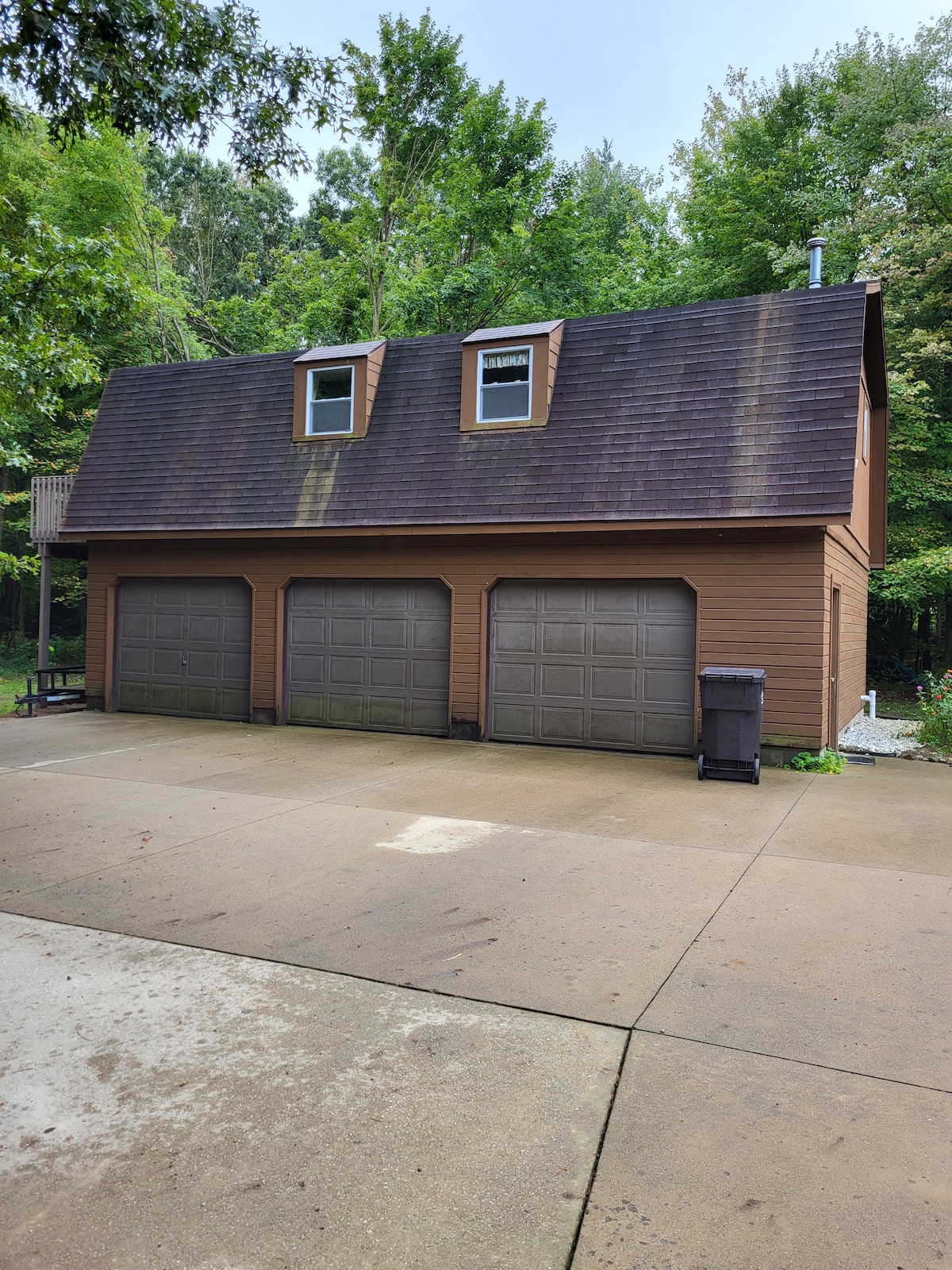Quiet, country setting that comfortably accommodates two. This space is above our garage, which is not attached to our house. We are often outside working or playing, but it is very private once you are upstairs! There is no WiFi here. There is a lovely, private balcony with a nice view, lots of random movies, and several fun games. Verizon service works great here, so if you have a Hotspot you could hook up to our smart TV.