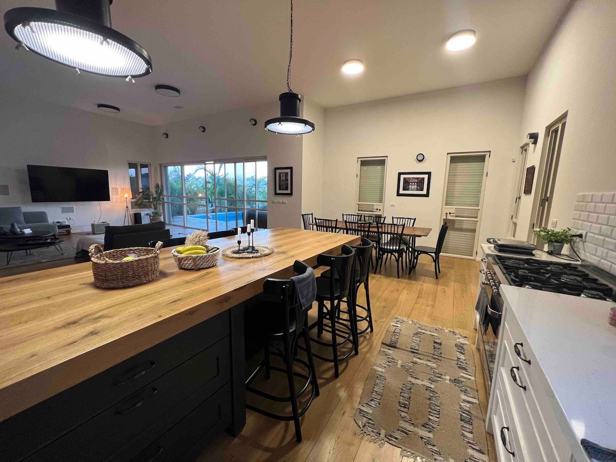 Nestled in Kadima’s peaceful countryside, our renovated retreat offers the perfect escape — just 15 minutes from vibrant Netanya. Surrounded by nature reserves and strawberry fields, our stylish poolhouse blends boutique design with pure serenity. Enjoy an enormous sun-soaked swimming pool, a state-of-the-art jacuzzi, outdoor shower, and lush private garden seating areas for relaxing. Whether you seek chic relaxation or quick access to beaches, dining, and culture — your dream getaway awaits.