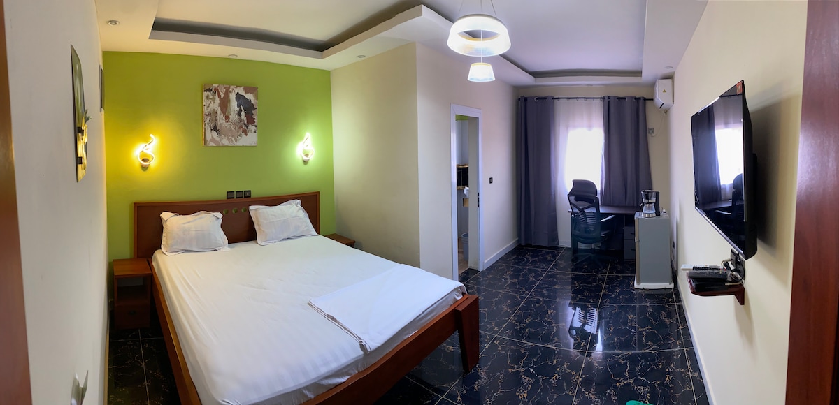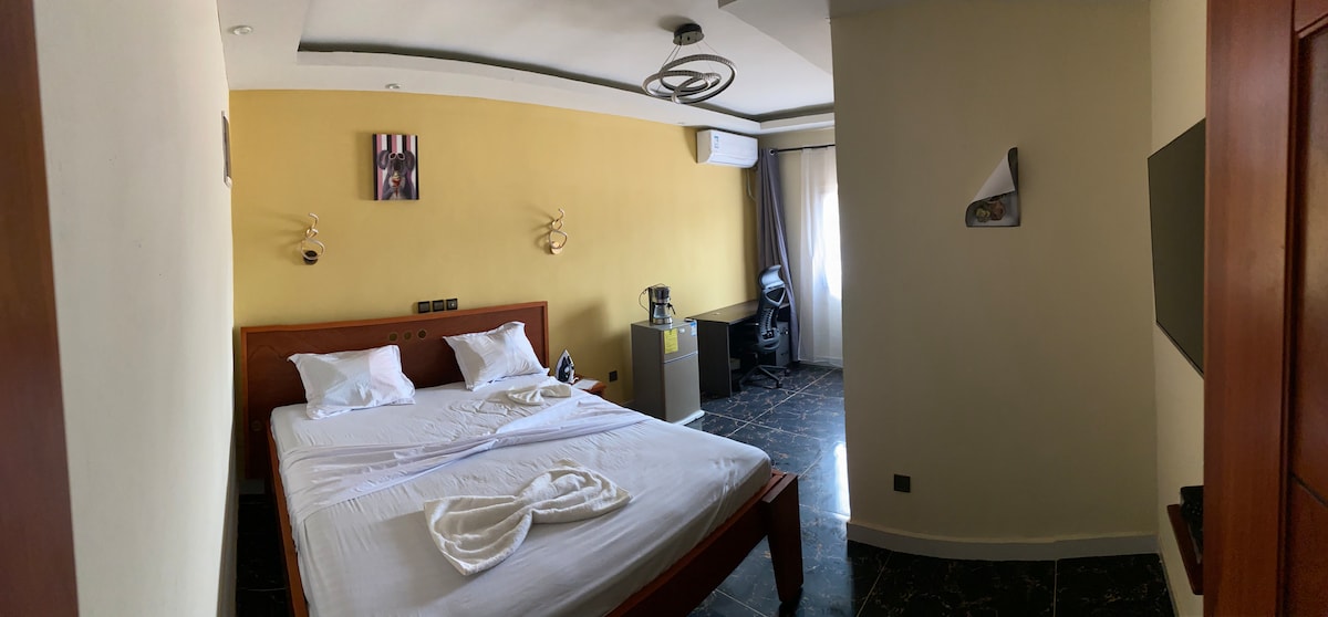 Stylish bedrooms, clean and quiet for your stay. WIFI Internet included with optic fiber . shower water. Air conditioning. Clean and private bathroom. Can include small fridge and microwave upon guest request. Daily cleaning service. Modern furniture with 50" smart TV. 24/7 security guards on duty + CCTV camera. Very easy and safe access . Paved road all the way from downtown. Automatic backup power generator. Cars: 2015 toyota highlander Hybrid and a 2010 toyota Camry With driver available