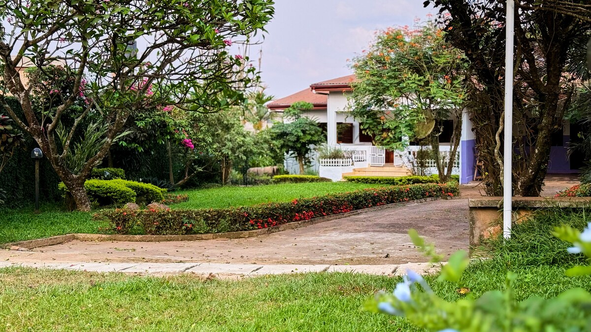 Nous vous souhaitons la bienvenue dans notre magnifique résidence avec jardin clos située dans le quartier Damas. Elle est facilement accessible en voiture, à 30 mn du centre ville et à 30 minutes de l'aéroport de Nsimalen. Sur place vous pourrez profiter pleinement de toute la résidence climatisée. un groupe électrogène peut être démarré en cas de coupure. Gardien présent sur place. Une personne de la famille habitant le quartier vous accueillera et sera joignable si besoin durant votre séjour