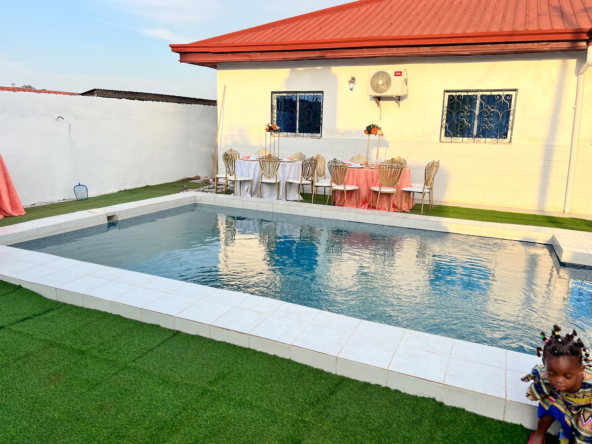Bienvenue chez Victorine! Une villa spacieuse, lumineuse et où il fait bon vivre, vous vous y sentirez comme à la maison. Située entre l’aéroport et le centre ville, l’emplacement parfait pour un séjour à Yaoundé ! Allongez vous sur un de nos transats et regarder le soleil se coucher, ou profiter d’un plongeon dans la piscine. Cette maison offre à la fois intimité, détente et plaisir.