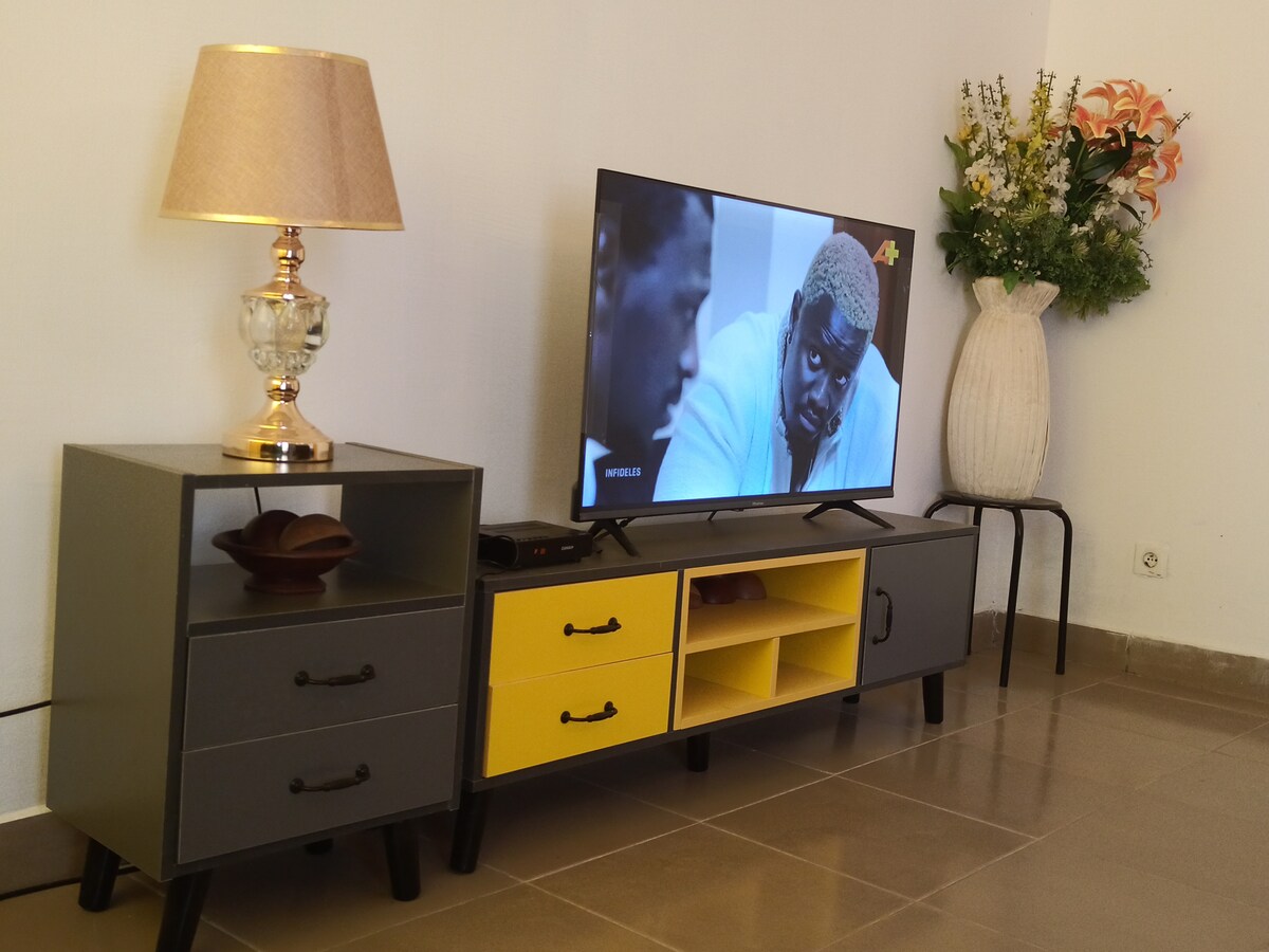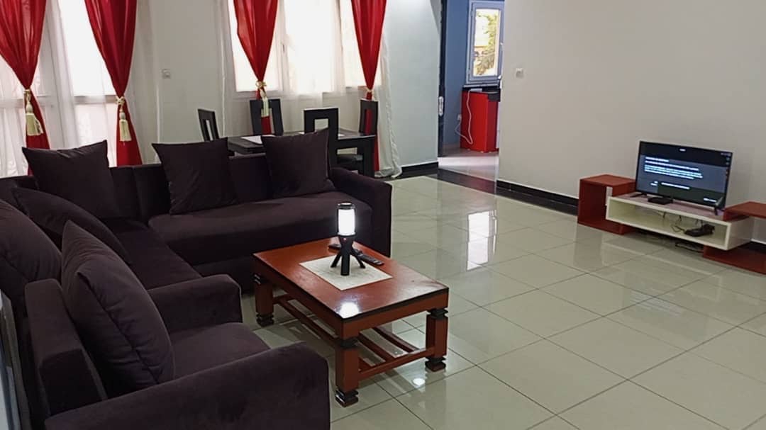Paisibles apparts meublés de 3 chambres, un salon, une cuisine, une cuisine, terrasse au quartier Omnisport à moins de 10 minutes du centre de la ville de Yaoundé. Parking, Wi-fi, climatisation, machine à laver, micro-onde, Blender, Bouilloire, Eau chaude, Conciergerie 24h/24, aide au nettoyage, groupe électrogène, ... Prix attractifs!