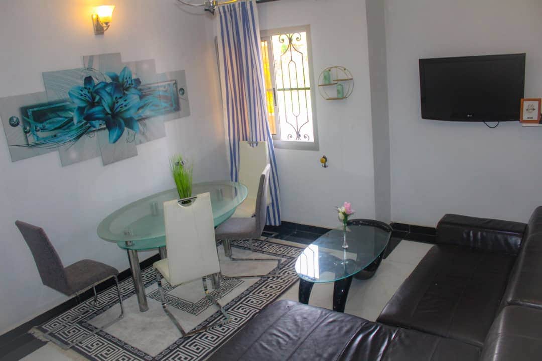 LES ATOUTS DU STUDIO SONT : - 1 Salon - 1 Chambre - 1 Toilette MODERNE - Cuisine moderne complétement équipée - Réfrigérateur, Cafetière et microonde - Eau chaude dans la salle à bain - Climatisation - Câble télé - Parking sécurisé dans la barrière - Gardien - Service régulier de nettoyage des unités - Service Buanderie, lavage et repassage -Literie 100% coton de marque IKEA remplacée sur une base régulière - WI-FI - Barbecue * En Option: location du véhicule avec chauffeur