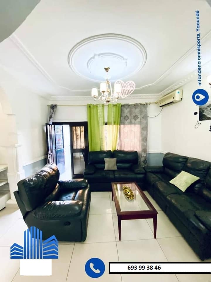Résidence de 2 chambres de 75m² au sein d'un camp sécurisé. À mi-chemin entre le centre ville (15 min) et l'aéroport (20 min) , il est situé au quartier mvan complexe beac . Plusieurs grandes enseignes situées aux alentours (Carrefour market, santa lucia, Dovv). Les draps sont changés une fois par semaine ou à la demande. Grand parking P.s: La recharge électrique au frais du client. Au plaisir de vous recevoir.