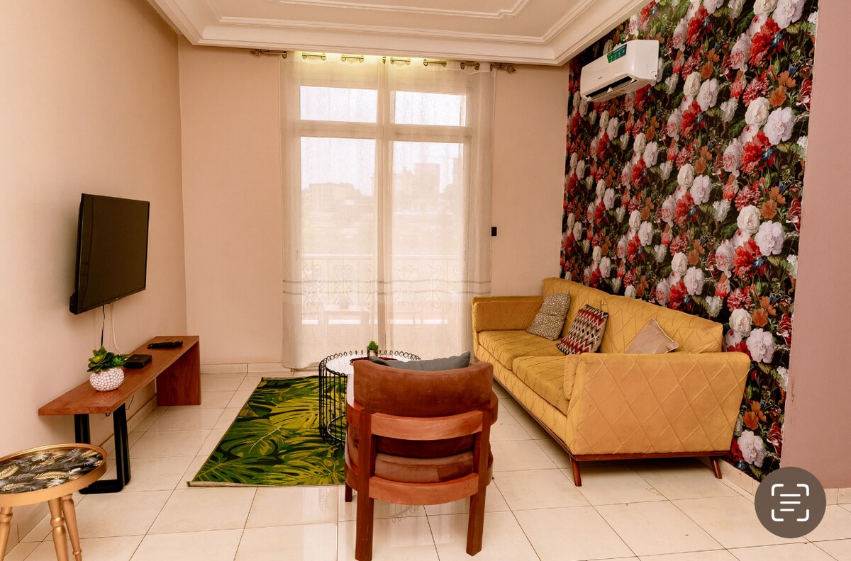 Appartement meublé confortable, situé à minutes de l'aéroport de Youndé. Sécurisé et calme, cadre convivial et simple pour vos séjours au Cameroun. 2 Chambres, salon, cuisie équipée, doche avec eau chaude, parking gratuit.