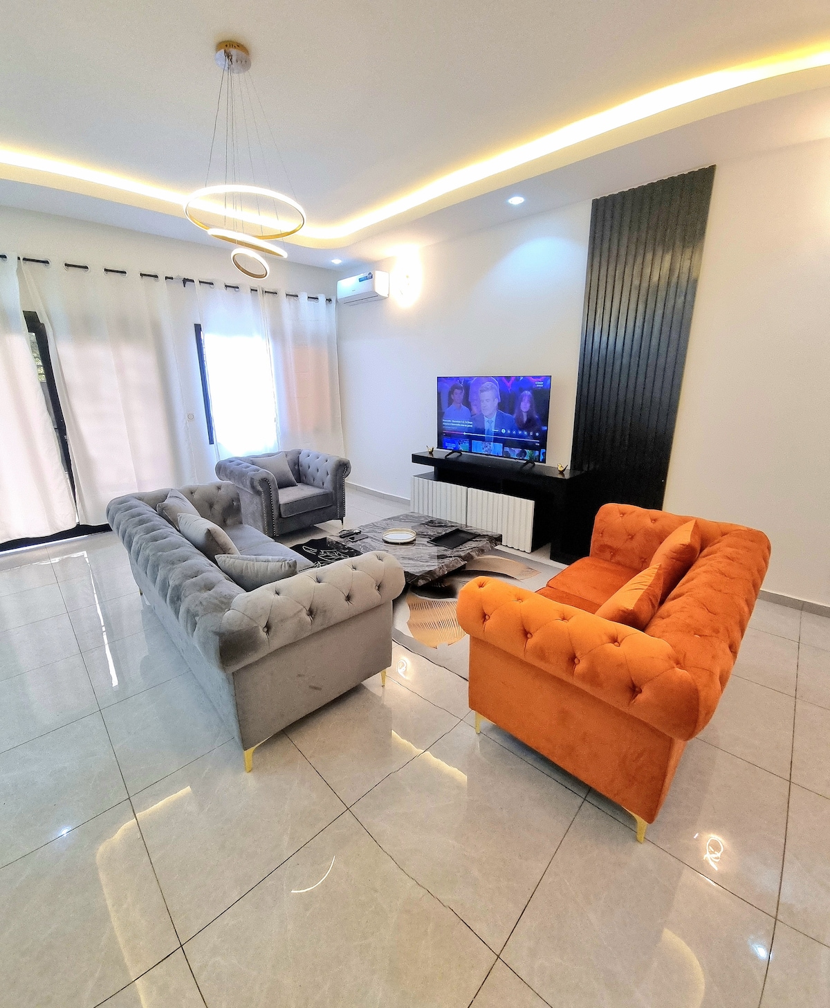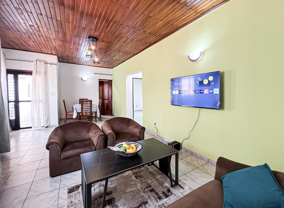 Profitez d’un appartement meublé moderne, confortable et entièrement équipé pour vos séjours. Vous y trouverez Wi-Fi Starlink, climatisation, TV écran plat, cuisine fonctionnelle et linge de maison. Situé dans un quartier calme et sécurisé, proche des commerces et restaurants, notre logement est idéal pour voyages d’affaires, séjours en couple ou vacances en famille. Confort, intimité et tranquillité garantis.