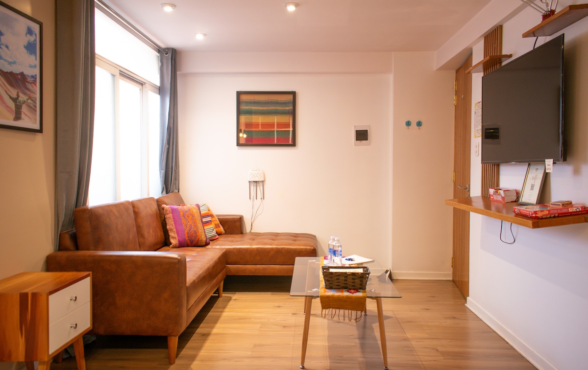 Apartamento dúplex amplio y luminoso, ubicado en el segundo piso de una encantadora casa de estilo colonial. Su ambiente confortable e independiente es perfecto para estadías en pareja o en familia. Con todos los servicios incluidos y una ubicación privilegiada a solo 8 minutos a pie de la Plaza de Armas, y cerca de lugares icónicos como el Koricancha y Sacsayhuamán. Además, contarás lo necesario a tu alcance: El mercado central de San Pedro, supermercados, farmacias y cajeros automáticos.