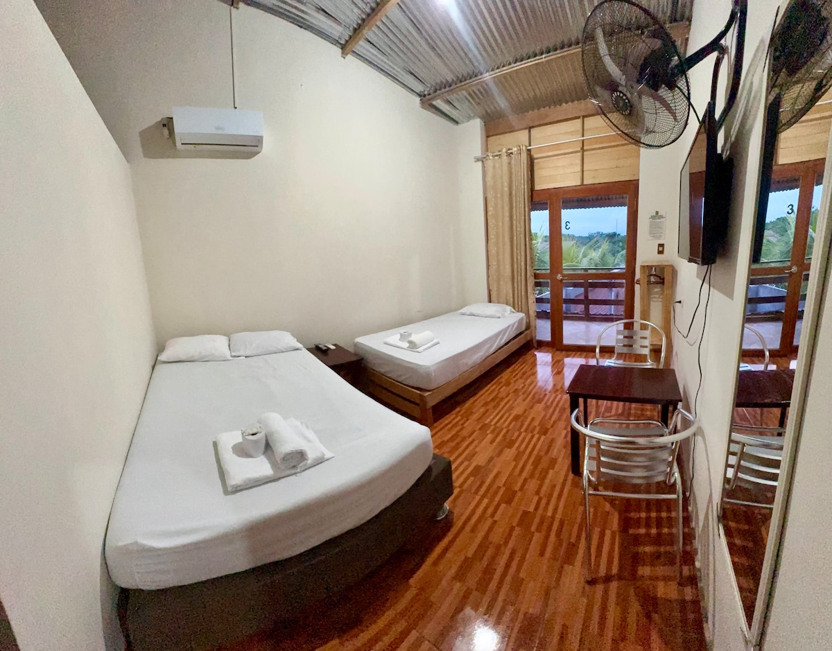 🌴 Amazon room with A/C on the 2nd floor. It has a double bed, TV, wifi, fan and air conditioning, desk and private bathroom.