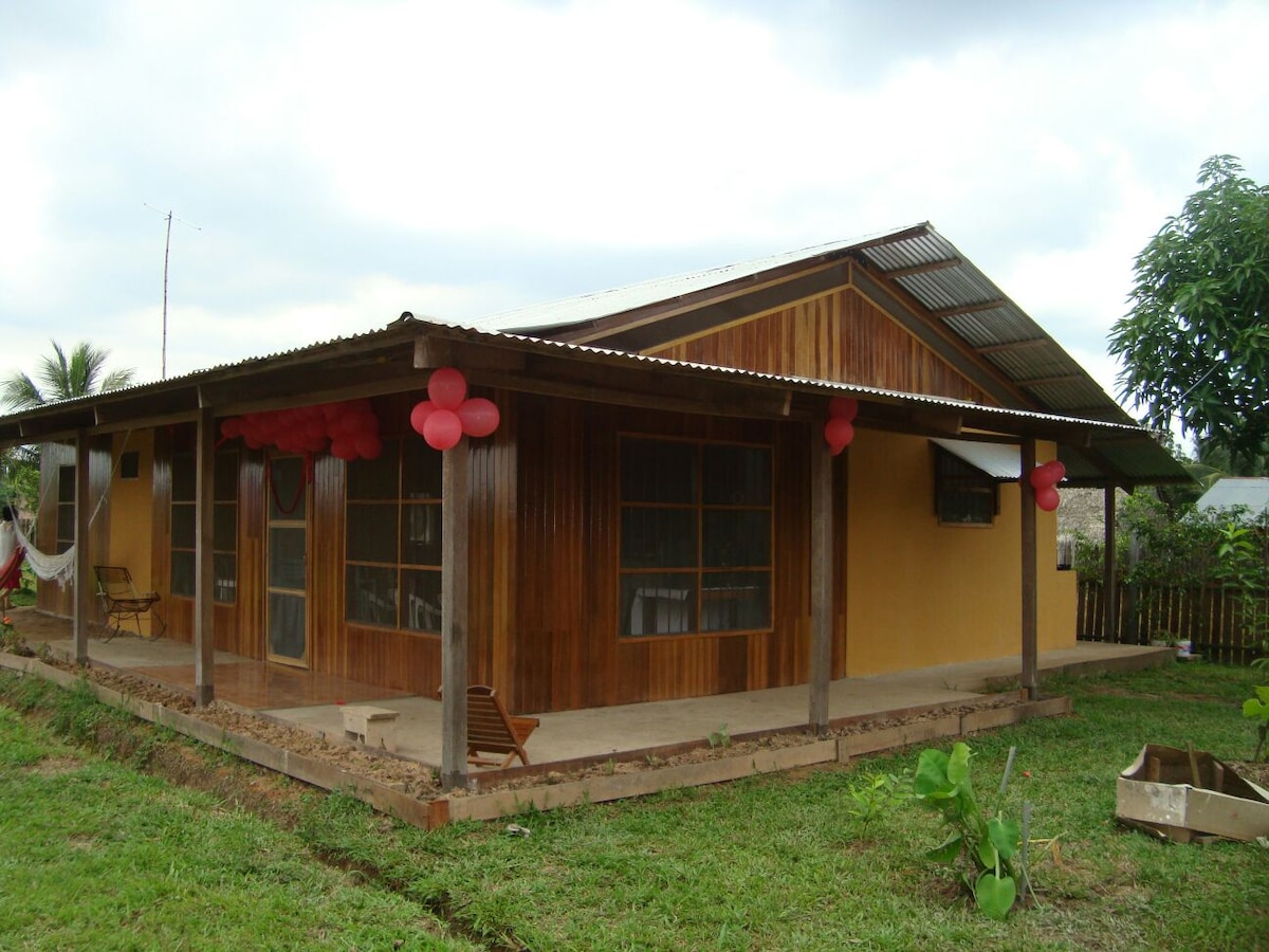 La casa se encuentra ubicado en el distrito de Yarinacocha, a unos 30 minutos del centro de la ciudad, cerca a centros comerciales ,el aeropuerto, a 10 minutos caminado hacía la plaza y la laguna de Yarinacocha.