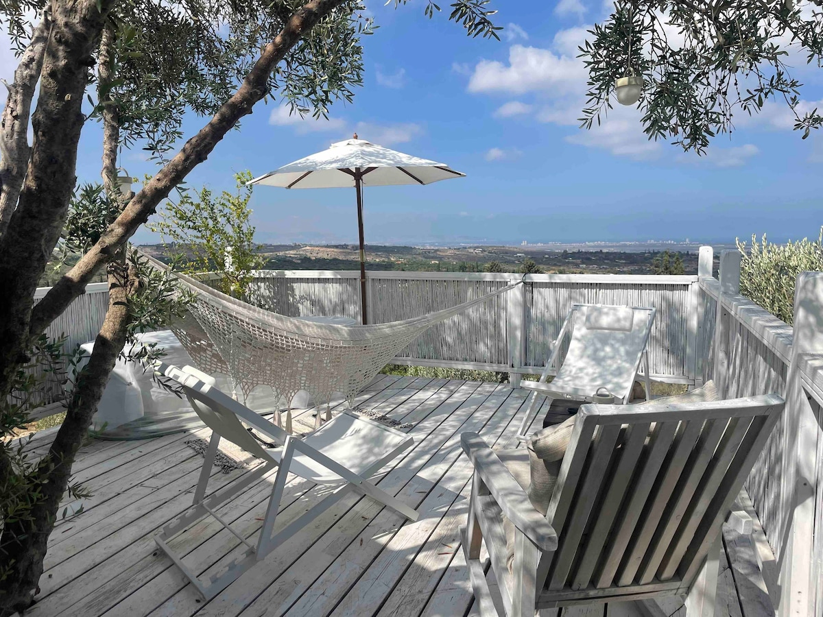 A magical cabin in a Galilean landscape, equipped with everything, overlooking the forest with an outdoor garden and a mountain view A pampering outdoor double bath Outdoor seating area, fire table TV with a variety of channels wifi Air conditioners in the bedroom and in the living room Fully equipped kitchenette Herbs in the garden for tea Nespresso machine sheets and towels, Hot water system Option for delicious double breakfasts