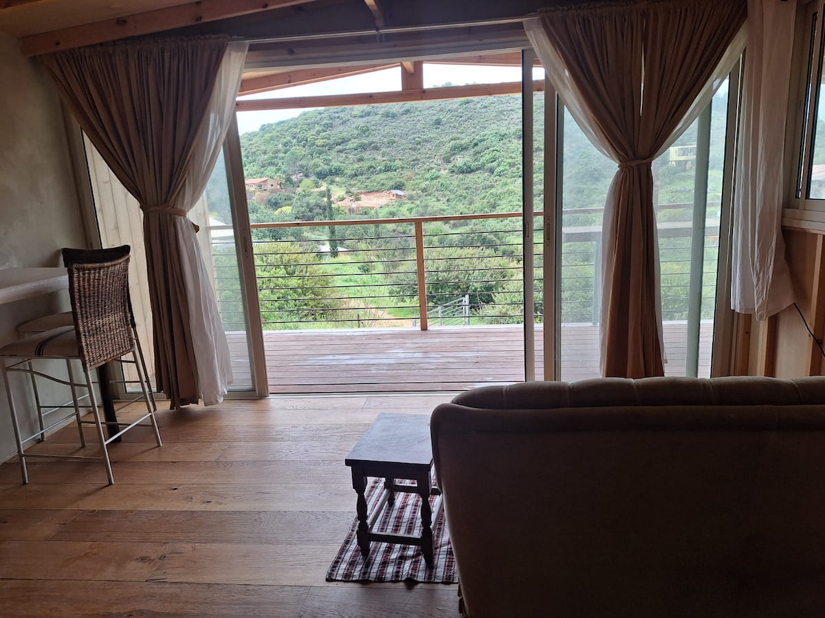 A magical two-room cabin, suitable for families (5 souls)/couples/individuals looking to relax. The cabin has an equipped kitchen (Pizza oven), Internet, TV with cable, a bath with hot water (gas boiler), a balcony overlooking the Mediterranean Sea. If your soul is asking for some rest in the magical nature, we invite you.
