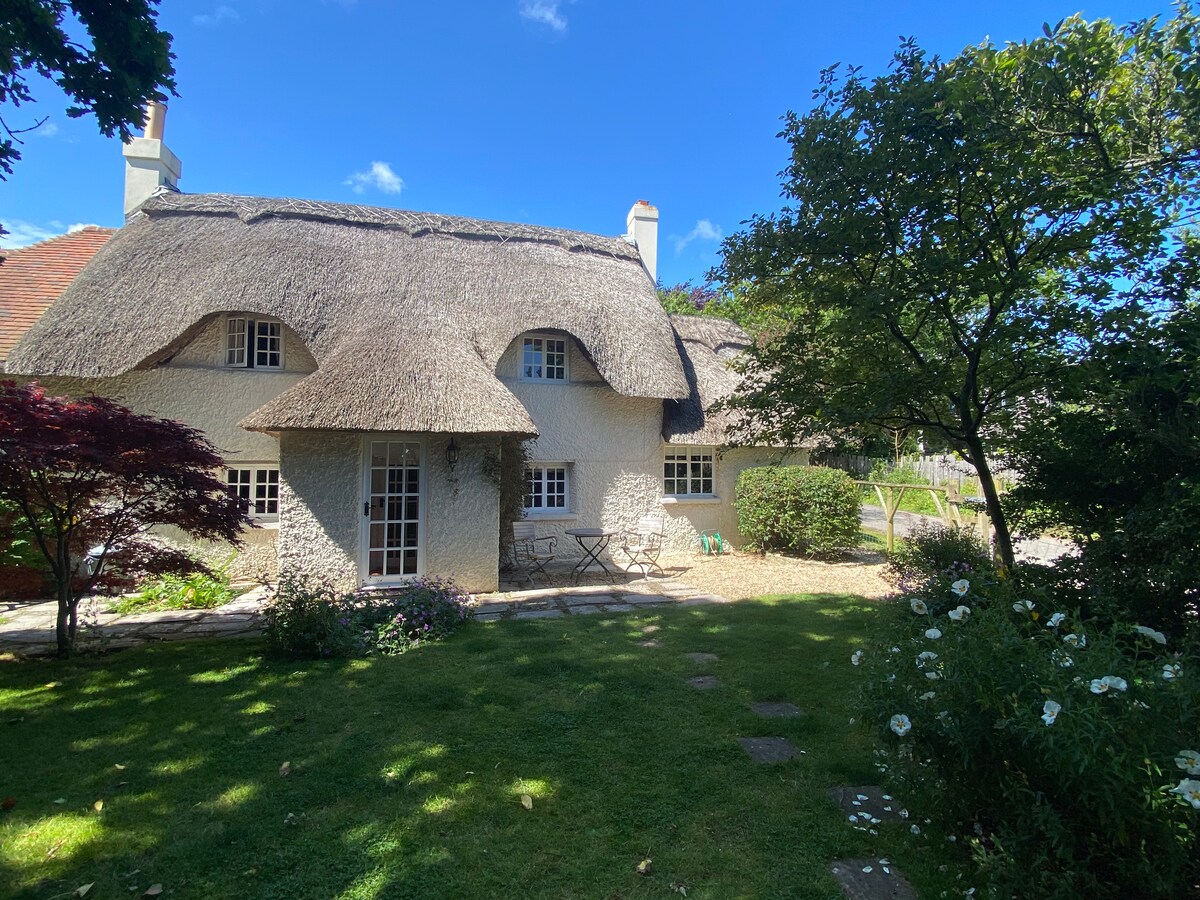 位于宁静的新森林环境中的漂亮的茅草小屋
