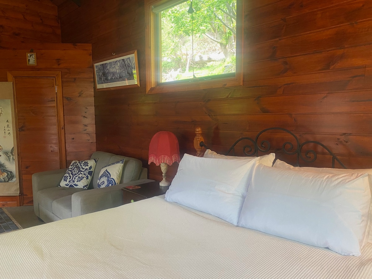 Set amongst the forest of Mt.BawBaw, guests discover the serenity of our natural landscape. Enjoy a soundscape of birds, see a dazzling night sky, take long walks through the forest, visit our local waterfall and relax with people you cherish around our fireplace in a charming, rustic interior. We’ve got you sorted with bed linen, firewood, internet via satellite, 240v electricity via our solar system, birdseed for feeding the parrots and all the kitchen and bathroom essentials that you’ll need!