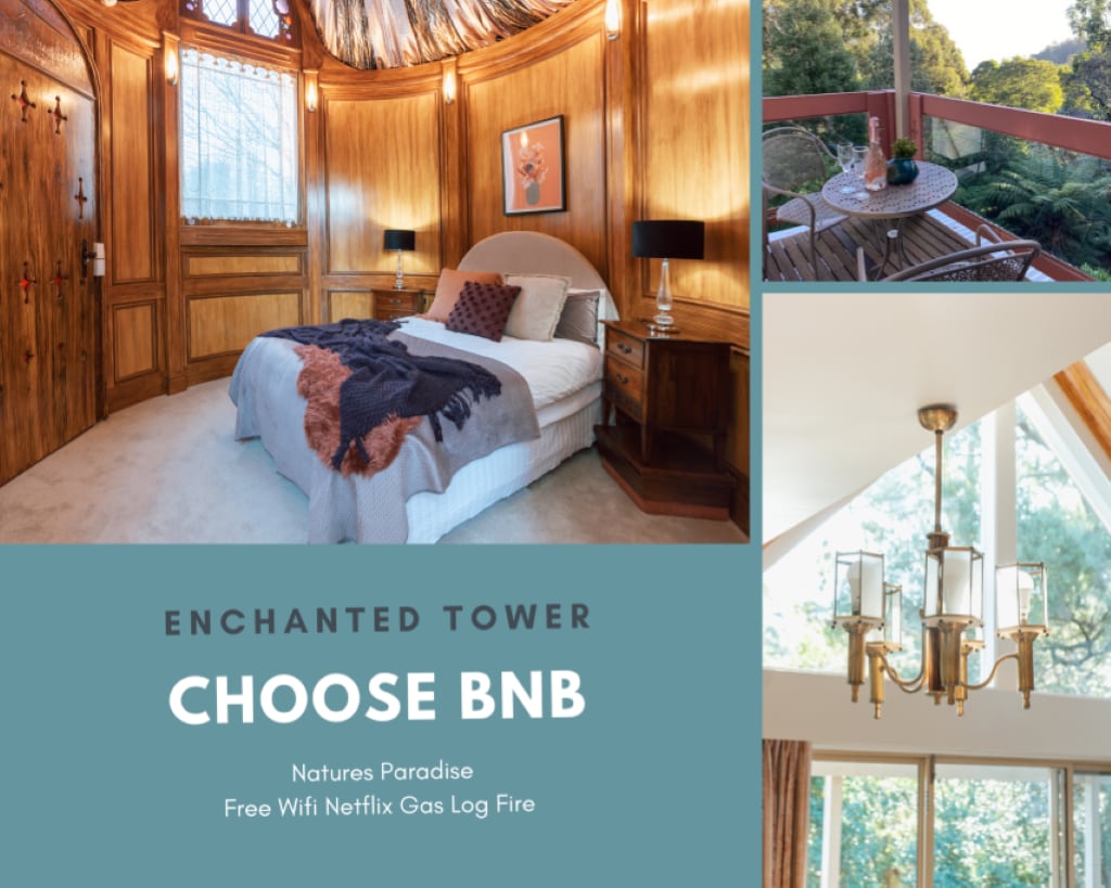 Sunrise Cottage part of the 'Mont du Soleil' Estate, located in Emerald on 40 acres, in the heart of the beautiful Dandenongs. A truly unique property inspired by the buildings & grounds of Provence & Tuscany. You’ll love the unique design & ambience of the property, the stunning views, peace and tranquility; yet less than an hour by car from Melbourne CBD. Featured on Neighbours Xmas special December 2024. Note: We host photoshoots but not in the Cottage.