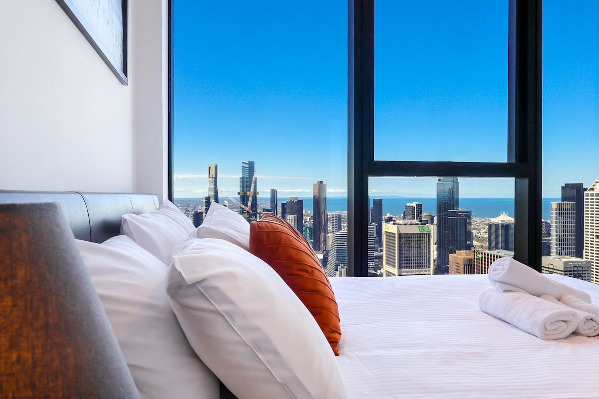 Luxury and modern designed apartment, which is a residential opportunity above and beyond anything yet seen in the Melbourne CBD. It is the tallest buildings in Melbourne, and our room is in the highrise level which get the best view of CBD,best location to enjoy sunset and fireworks. We provide high quality beds and mattress, hotel level bedding. Miele brand oven and gas stove. 55” tv and comfortable environment in living room. 2 bedrooms and 2 bathroom, suitable for family and friends.