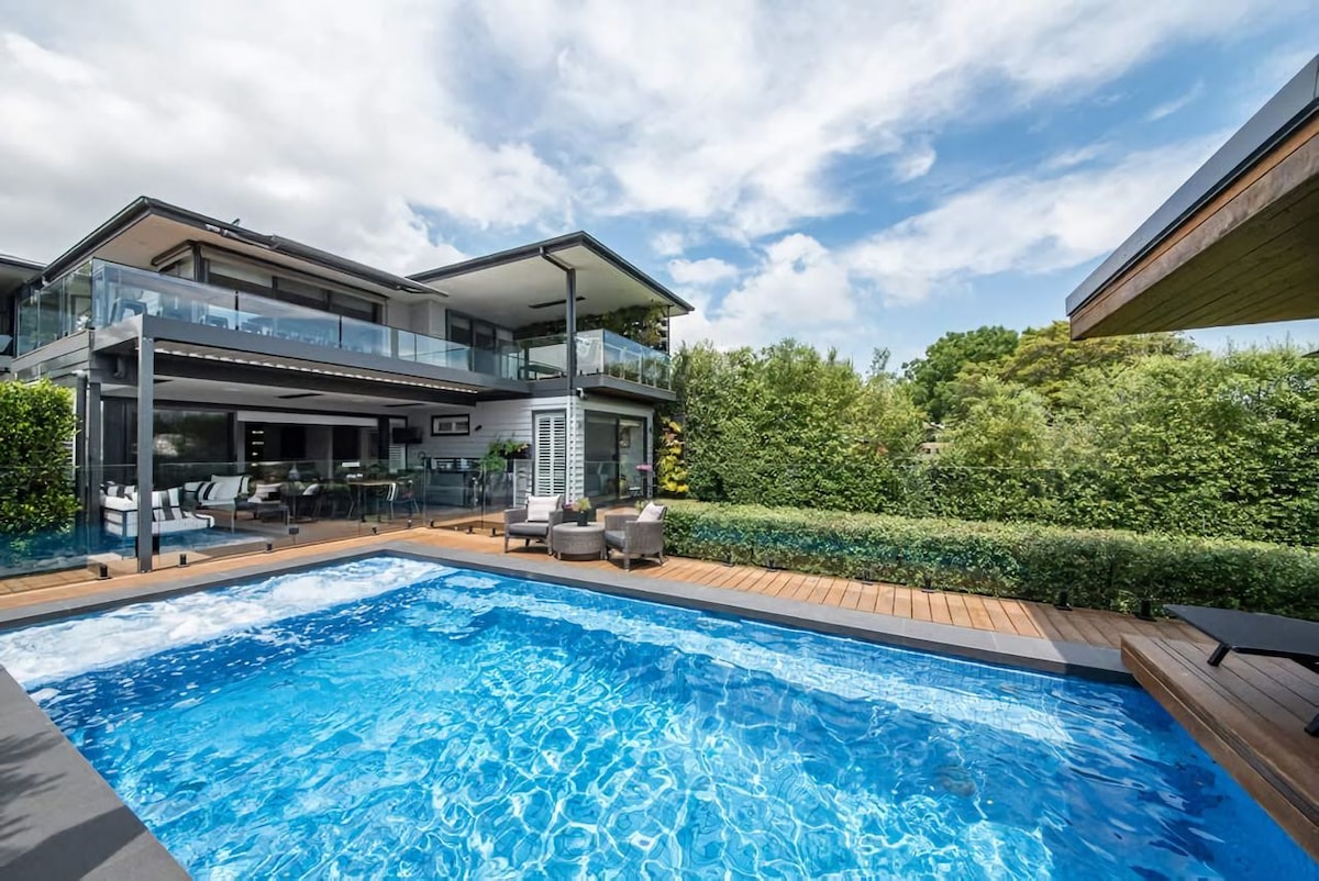 Welcome to your dream holiday home. Experience the magic of Mount Martha in spectacular fashion with this luxury beachside residence capturing a sweeping Port Phillip Bay view footsteps to the foreshore. This striking holiday home features panoramic views of year-round sunsets over the water and passing ships on the horizon enclosed in a secluded and private setting. In the evening, you can change the color of our 14.4m *4m pool using the remote.