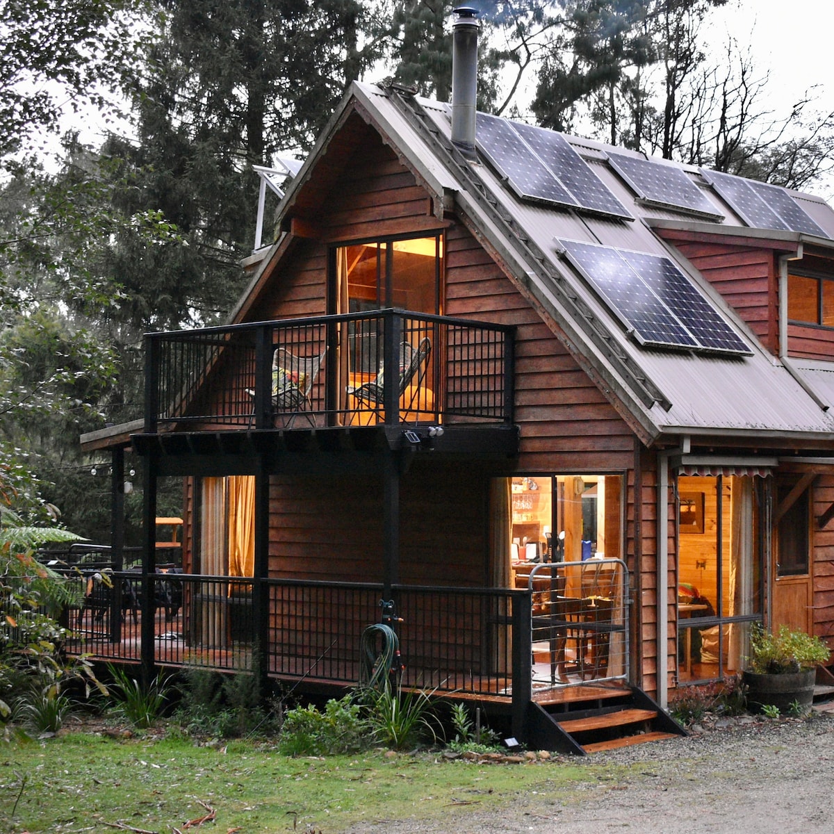 Set amongst the forest of Mt.BawBaw, guests discover the serenity of our natural landscape. Enjoy a soundscape of birds, see a dazzling night sky, take long walks through the forest, visit our local waterfall and relax with people you cherish around our fireplace in a charming, rustic interior. We’ve got you sorted with bed linen, firewood, internet via satellite, 240v electricity via our solar system, birdseed for feeding the parrots and all the kitchen and bathroom essentials that you’ll need!