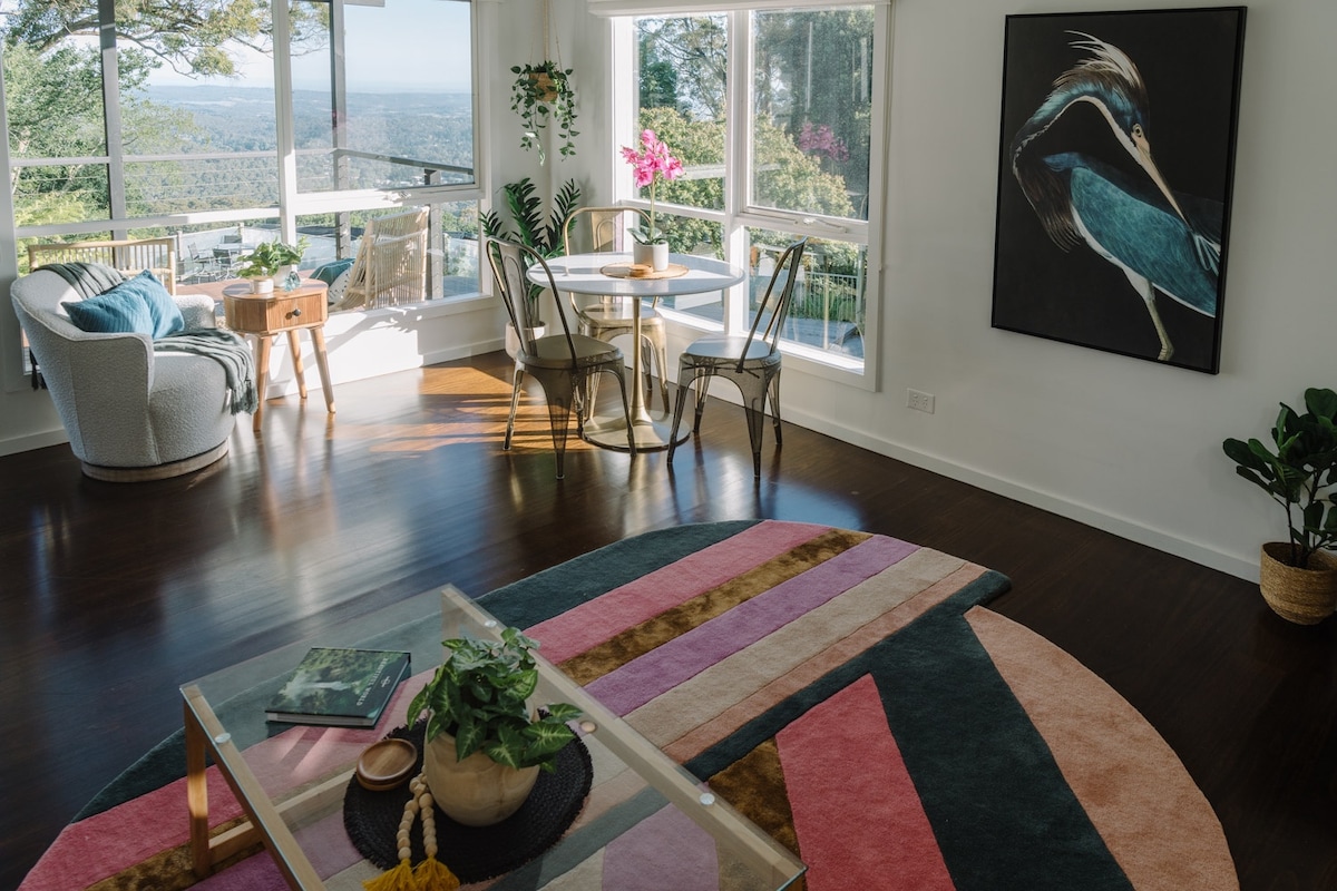 Wake up in your own native Australian Eucalytpus forest. WARRANDYTE RETREAT EV charging now available FOR OCTOBER ONLY Book Friday and Saturday nights And get Sunday night FREE Escape to our new 2020-built designer Apartment, and experience Warrandyte's tranquility and views - continental breakfast included of course - with your own private viewing deck.