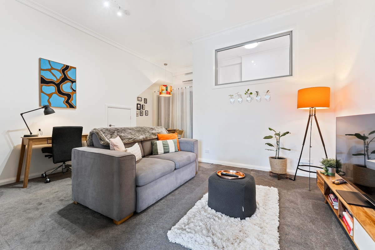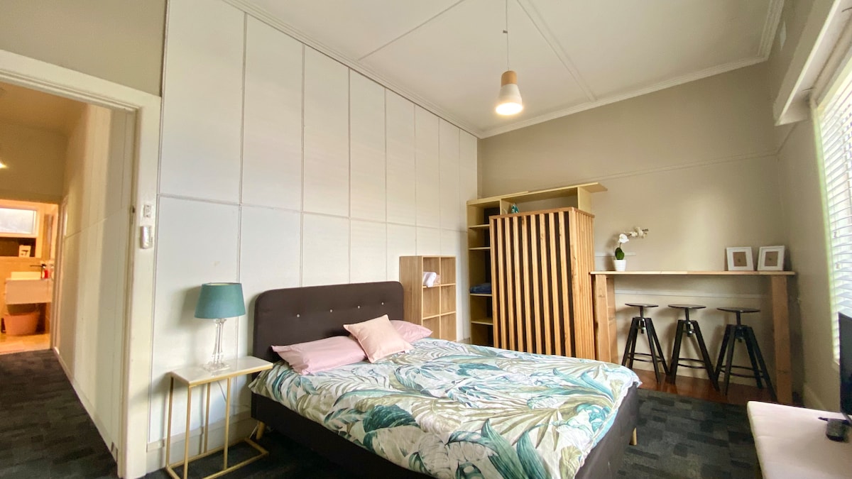 The Laneway Loft is a stylish retreat in Newport, 20 minutes by train from Melbourne’s CBD and 5 minutes to Williamstown. Ideal for couples, this stylish loft offers private lane access, a bright bedroom with a king-size bed, a kitchen, and a modern bathroom. The open-plan living area includes an Apple TV, a desk, and a relaxing chaise. A small outdoor space adds to the appeal. Perfect for work or leisure, The Laneway Loft at the back of our property, ensures privacy and a memorable stay.