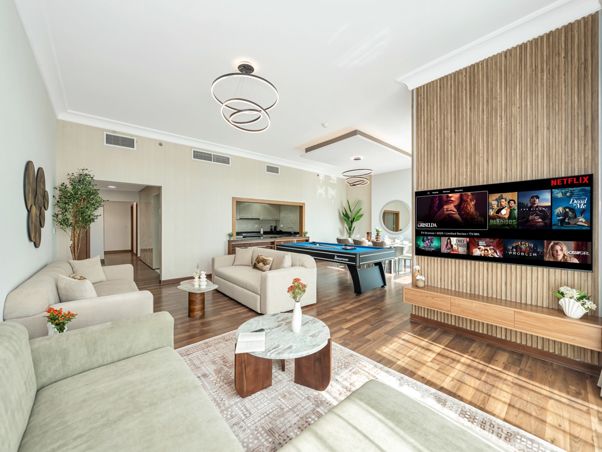 Dive into luxury at our high-end 4BR apartment at Ansam Community, located at the heart of Yas Island. Enjoy state-of-the-art features like Smart TVs, Billiard Table & a keyless entry to ensure an effortless stay. Delight in amenities like swimming pool, a well-equipped gym & children playground. Your urban oasis is just a short stroll away from Ferrari World, SeaWorld, IKEA, Warner's Brothers, Formula 1 Circuit. With 24/7 support, Elite Nest is dedicated to making your stay unforgettable.