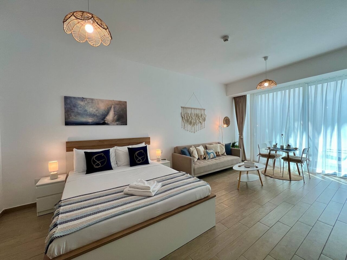 Welcome to Sunny Bliss, a stylish studio on Yas Island offering modern comfort and charm. Delight in a bright, airy space with breathtaking views, a well-equipped kitchen, and a cozy ambiance. Unwind on the private balcony or venture out to nearby gems like Yas Marina, Ferrari World, and Yas Mall. Enjoy complimentary access to a communal pool, fitness center, private beach, and parking, creating an ideal urban escape for a peaceful and convenient stay.