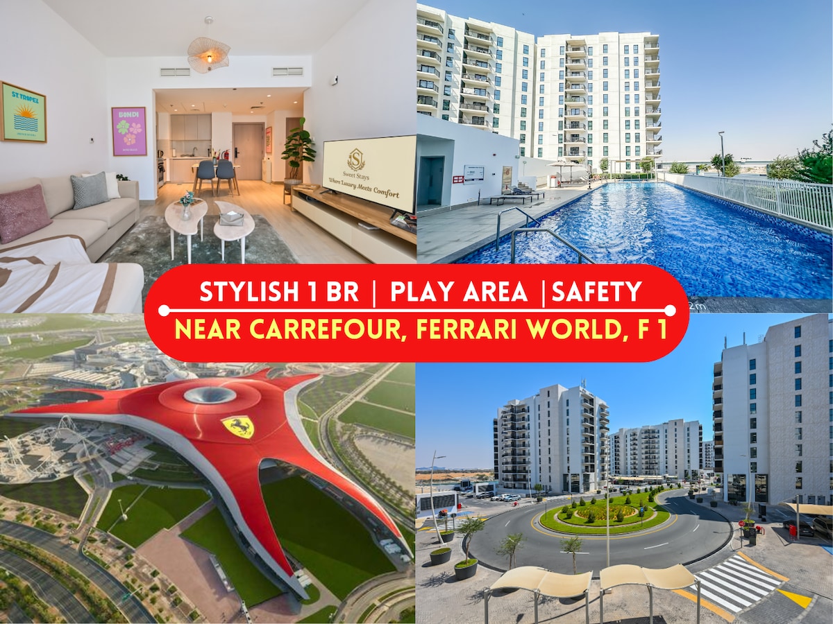 Comfortable 1-bed in Water’s Edge, Yas Island – your perfect Ferrari World base! • 5-min to Formula 1 Yas Marina Circuit • 5-min drive or 2 km walk to Ferrari World • 5-min to Yas Waterworld & Warner Bros • 12-min to Abu Dhabi Airport Modern apartment with king bed & sofa bed, smart TV, full kitchen, private balcony, free parking, gym & pools. High-speed Wi-Fi, washer/dryer. Ideal for couples, solo travelers or race weekends. Peaceful yet super close to all the action! Learn more below -
