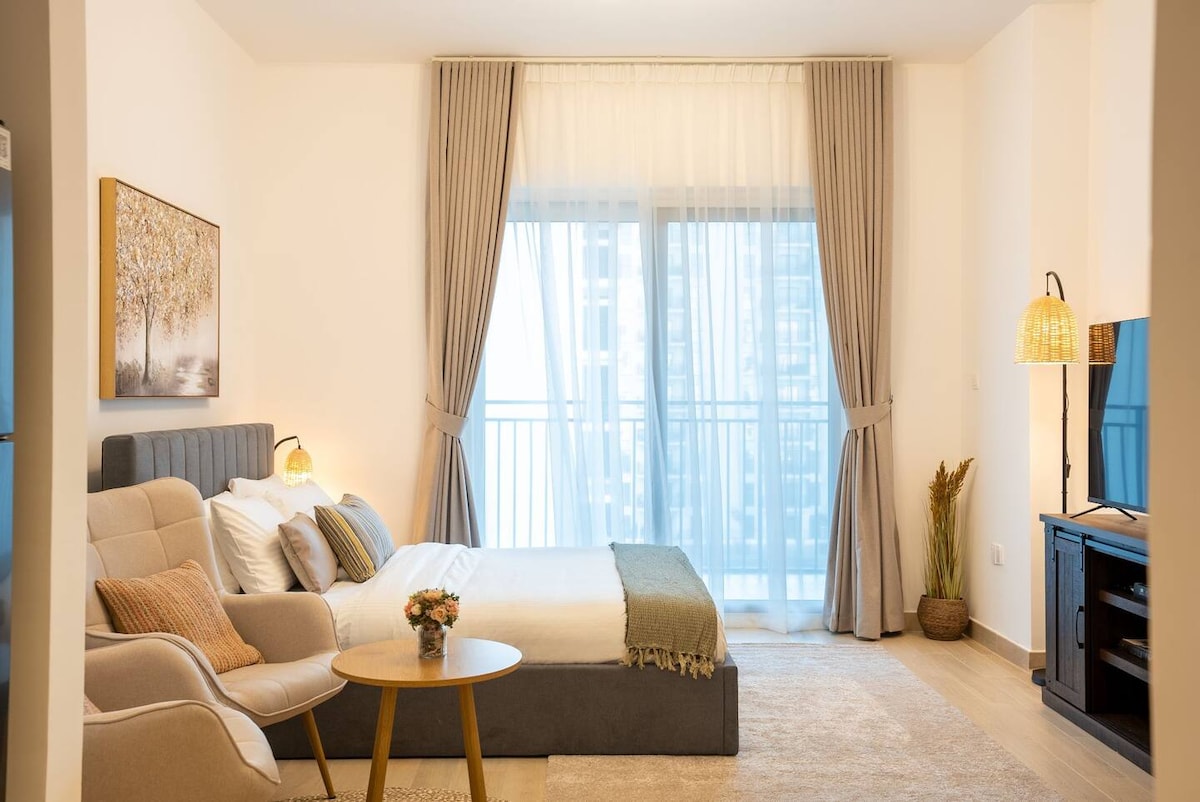 Dive into luxury at our high-end studio apartment at Ansam Community, located at the heart of Yas Island. Enjoy state-of-the-art features like Smart TVs & a keyless entry to ensure an effortless stay. Delight in amenities like swimming pool, a well-equipped gym & children playground. Your urban oasis is just a short stroll away from Ferrari World, SeaWorld, IKEA, Warner's Brothers, Formula 1 Circuit. With 24/7 support, Elite Nest is dedicated to making your stay unforgettable.