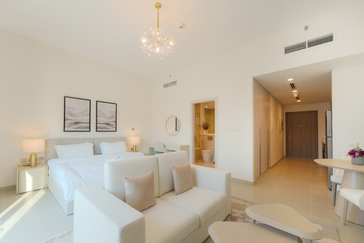 Stylish Private Studio in the Best location of Yas Island. Steps from Yas Island’s top attractions - perfect for solo travelers, couples, or business guests seeking comfort, style, and convenience. 2 min to Ferrari World by car 5 min walk to SeaWorld 3 km to Yas Mall 6 km to Formula-1 Circuit 6 km to Abu Dhabi International Airport Fully equipped kitchen High-speed Wi-Fi and Smart TV Premium linens, towels, and amenities for a luxury stay Parking on request Permit No: PER240004