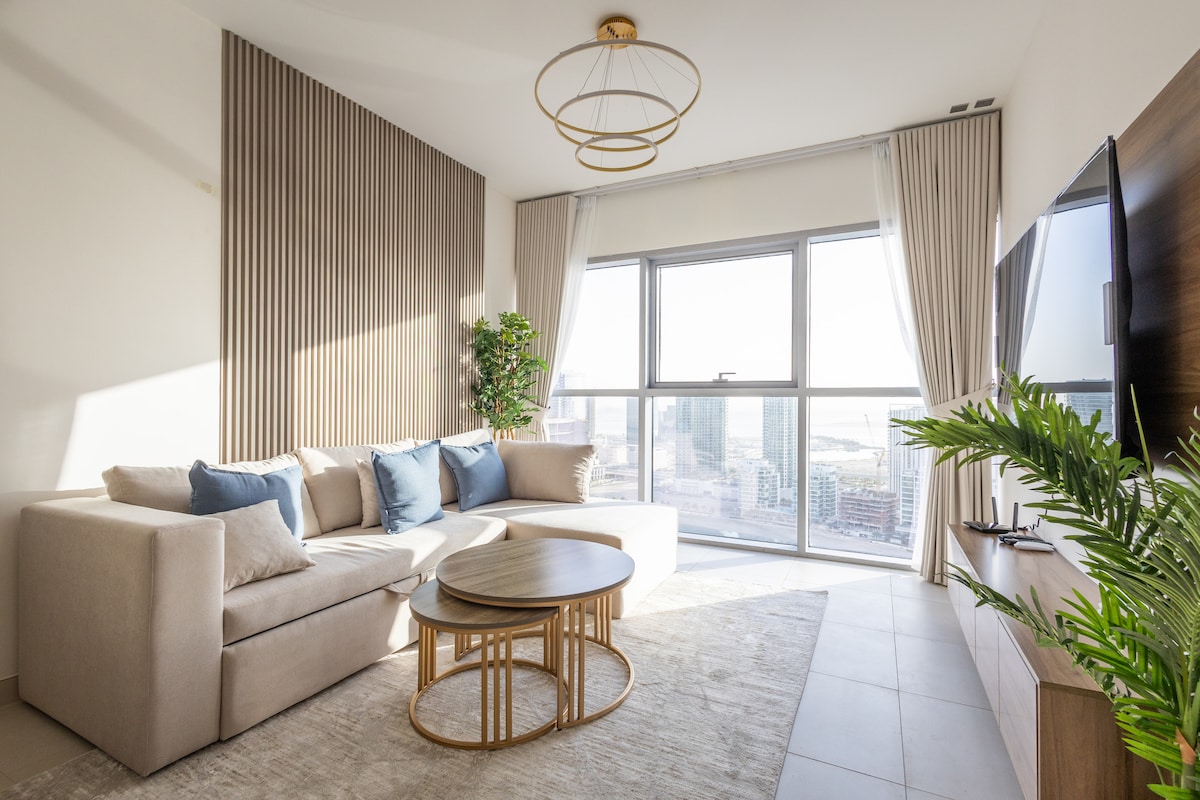 Immerse yourself in a bohemian-inspired retreat in Yas Island, one of Abu Dhabi’s top waterfront destinations. Surrounded by the energy of Yas Marina Circuit, the tranquility of the harbor, and world-class dining, this 1-bedroom apartment offers the perfect balance of excitement and calm. With earthy textures, Arabesque details, and handwoven textiles, the space is full of character and charm. Featuring a 120-inch screen and surround sound, it’s ideal for a stylish, memorable stay on Yas Island.