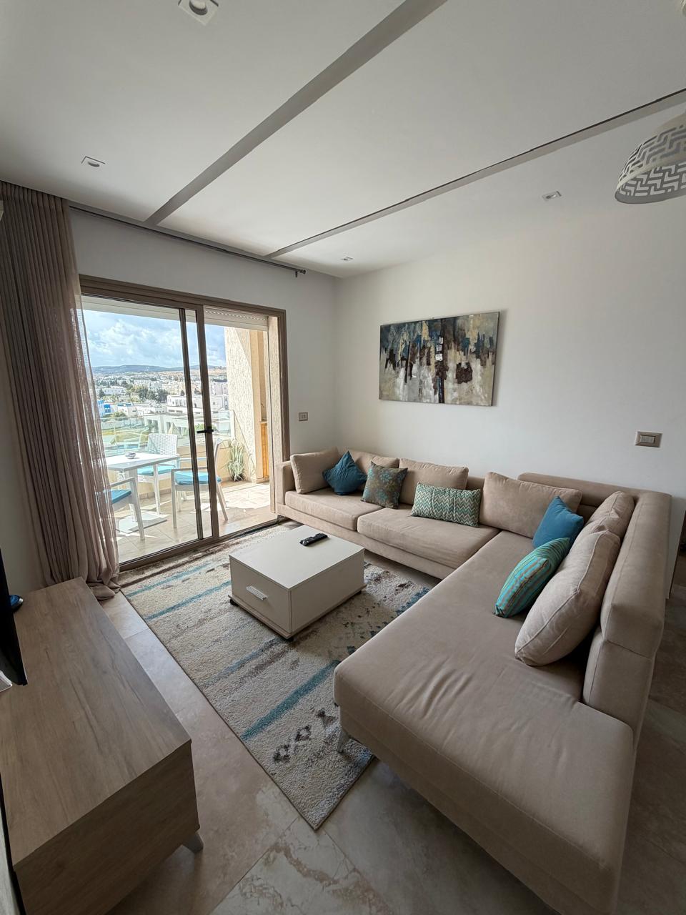 Détendez-vous dans ce logement unique et tranquille. Un appartement très haut standing de vacances unique & neuf. Appartement situé dans une petite résidence très sécurisée et calme avec piscine et place de parking sous-sol. 4 min à pied de la plage, une terrasse de 14m² avec vue sur mer, une cuisine super équipée, chambre à coucher style arabesque surtout au niveau du plafond, séjour en L avec un canapé-lit convertible et une salle de bain avec douche à l'italienne. Proche des hôtels Rte touris