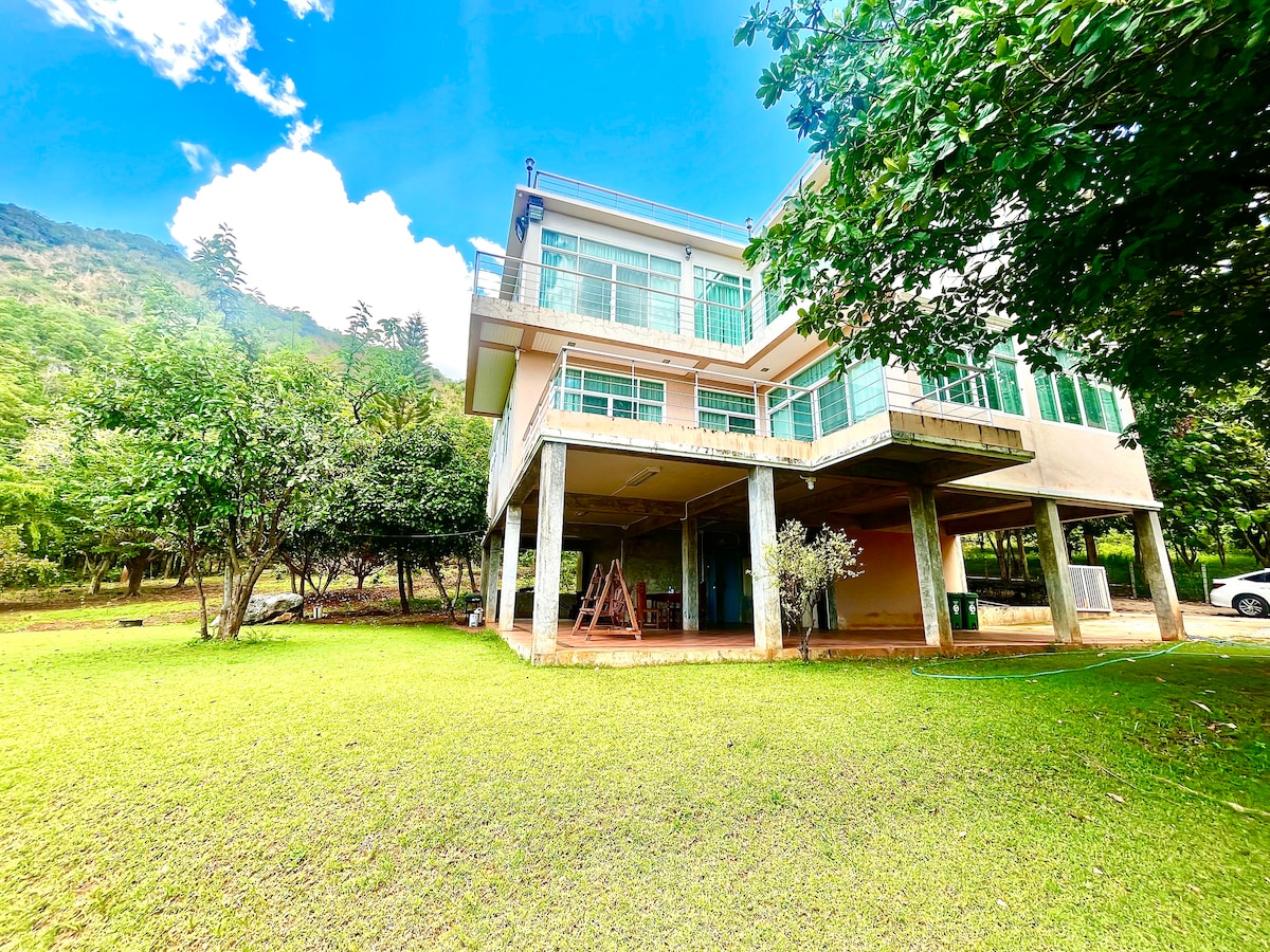ที่พักพูลวิลลาส่วนตัว ใกล้แนวเขาใหญ่ วิวสวย บรรยากาศดี อยู่ติดถนน3052 เหมาะกับการสังสรรค์และพักผ่อนกับครอบครัวและเพื่อนๆ มีดาดฟ้านอนดูดาว มี 2 ชั้น มี 4 ห้องนอน ( 5 เตียง ) 5 ห้องน้ำ, 1 ห้องครัว ,1 ห้องรับแขก มีดาดฟ้านั่งชมบรรยากาศยามค่ำคืน มีสระว่ายน้ำส่วนตัว มีโต๊ะพูล มีคาราโอเกะ ที่จอดรถในบ้านรองรับได้ถึง 10 คันมีครัวให้พร้อมอุปกรณ์ สามารถทำอาหารทานเองได้ มีเตาปิ้งย่าง มีเตาชาบูไว้ให้บริการ มีประกันบ้านพัก 3000 บาท จ่ายตอนเข้าที่พัก และคืนให้ตอนออกจากบ้านพัก ( ถ้าไม่มีของเสียหายในบ้านพัก )