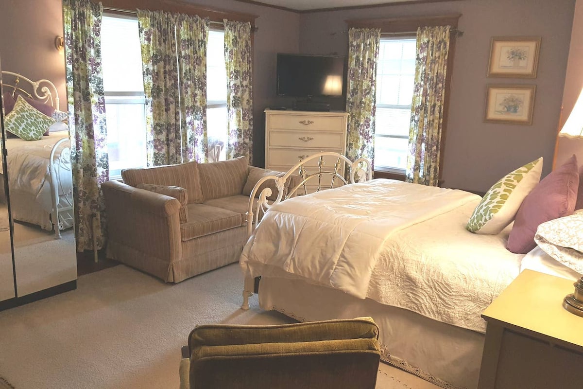 Beautifully restored 1875 village home 2 blocks from Seneca Lake, in the heart of wine country. Our quaint village is centrally located on Seneca Lake where over 50 wineries/breweries await you. Keuka outlet trail is a few blocks away- use our bikes to explore gorgeous waterfalls and trails. Your spacious private suite has a separate entrance and porch all to yourself with mini frig,microwave and Keurig. along with an en suite bathroom. The Copper Barn next door has additional lodging.