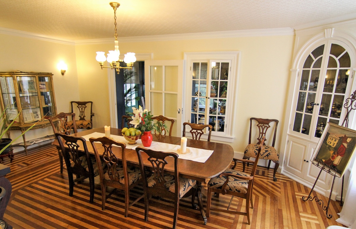 Decorated with antiques, oriental rugs over heart pine floors, paintings and miscellaneous antiquities. Full breakfast served on bone china. Relax in the living room in front of the fireplace and enjoy music from extensive collection of vinyl records (a few CD's too). Bring home a bottle of wine or some artisan beer and enjoy on the covered porch. The B&B is located in the Finger Lakes Region in near proximity to Keuka Lake.