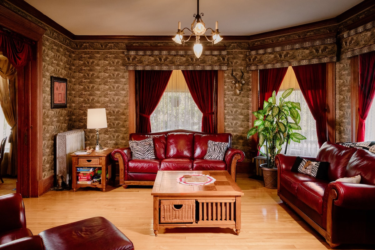 1897 Beekman House Bed and Breakfast is a beautifully restored Victorian manor. The house retains its original front porch, pocket doors, hardwood floors, high ceilings, stained glass windows, richly-toned woodwork, and grand staircase. Located in Central New York’s world-class wine region, our beautifully-appointed home, modern amenities and gracious hospitality will provide the perfect setting for your Finger Lakes vacation. The Empress Room is an exquisitely appointed room fit for a queen.