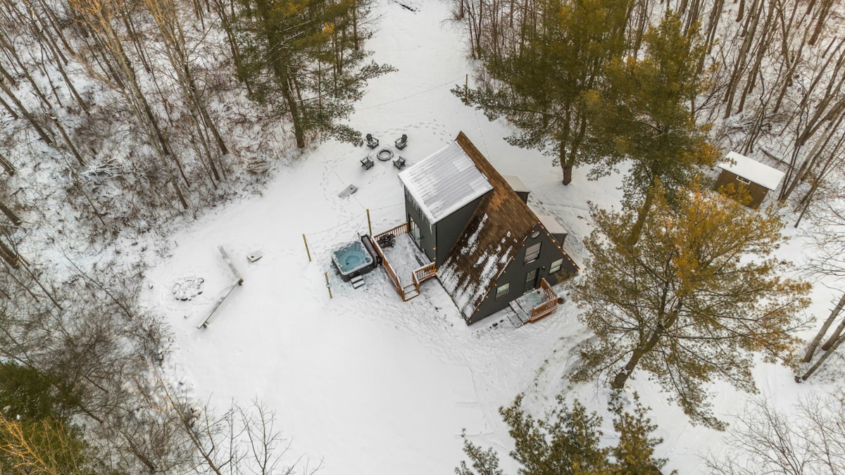 Escape to the Black Birch Cabin – a stylish, romantic hideaway designed for couples. Tucked away in the heart of the woods, this cozy cabin offers ultimate seclusion w/ a private hot tub, a crackling fire pit, and serene forest surroundings. Perfect for unwinding together, whether stargazing by the fire, playing board games, enjoying the peaceful ambiance, or simply reconnecting. The Black Birch cabin invites you to relax, recharge, and create unforgettable memories in a truly magical setting.