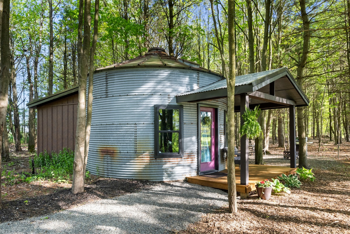 Baby Blue at Sugar Creek is a 8 foot x 20 foot shipping container home on 10 serene park-like acres with towering Sycamore and Black Walnut trees, lots of wildlife and a creek flowing through the property. Very private and very close to all of the assets of the Finger Lakes. Wineries, breweries, hiking, bicycling and Keuka Lake just minutes away. On Instagram at babyblue_sugarcreek
