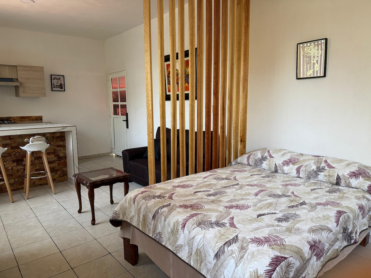 Moderno estudio en Oaxtepec Morelos, ideal para pasar unos días con tu pareja, familia o amigos. Te invitamos a disfrutar de un hospedaje tranquilo con todas las comodidades y atención que necesitas para relajarte. El espacio está diseñado y preparado con amor para tu llegada, cuenta con 1 recamara, baño privado, Smart Tv, terraza, asador, cocineta equipada, sala y comedor, además de disfrutar de albercas, gym, rooftop, jacuzzi y más. ¡No tendrás que salir para nada, bienvenido!