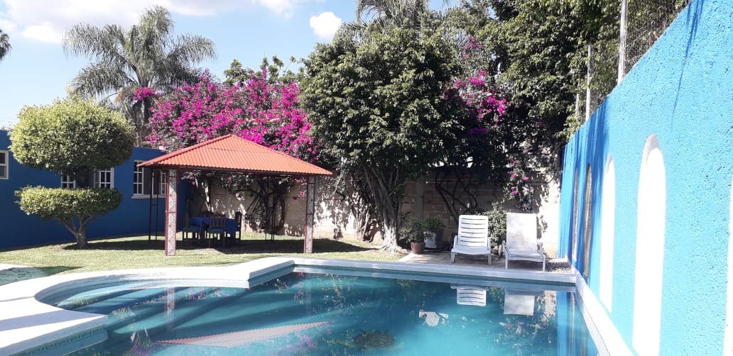 Rodeada de naturaleza, aquí podrás disfrutar con tu familia ó amigos de un lugar rodeado de hermosos jardines y palapas, piscina, fuentes , área de fogata, cancha de futbol y mesa de billar. En un ambiente campirano con fuentes, para comer al aire libre junto al asador y alargar una buena sobremesa bajo las estrellas. Es una villa equipada con todo lo necesario para su estancia. Se ofrece café, agua de garrafón, así como amenidades en los baños. Cuenta con todo lo necesario para su estancia.