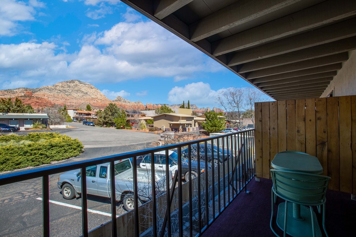 Located on the second floor, our Kitchenette rooms are perfect for the solo traveler or couple that is looking for extended stay to explore Sedona's great hikes, sightseeing and work remotely. Our guest will enjoy comfortable place to rest after a day of exploring Sedona. All rooms feature a full kitchenette with full size fridge, microwave, dishwasher, induction stove top, sink, all the necessary plates, utensils, pots, pans and Wi-Fi.