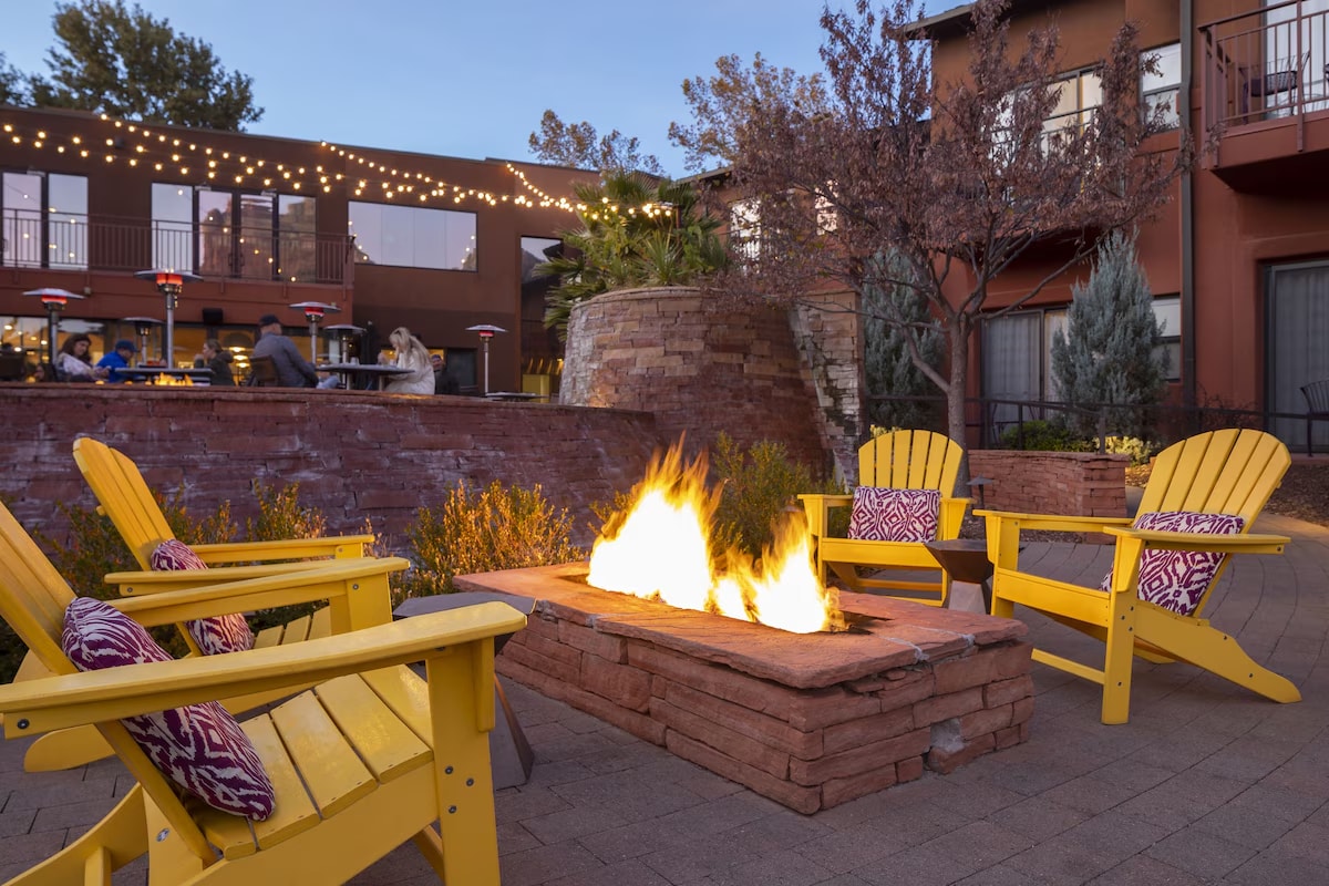 Escape to a romantic retreat in the heart of Sedona. Enjoy cozy amenities, including air-conditioned rooms, private bathrooms, complimentary Wi-Fi, in-room coffee machine, microwave, and mini fridge. Unwind in our serene gardens, relax on outdoor swings, or enjoy the peaceful ambiance by the water feature and fire pits. Set the perfect mood under the bistro lights. It's an ideal base for your Sedona adventure, just minutes from hiking trails, with stargazing, dining, and shopping nearby.