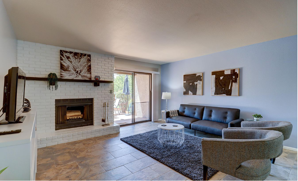 If you looking for a tranquil place in Sedona near downtown, then look no further. Close to restaurants, grocery stores, hiking, biking, shopping, parks and so much more. The neighborhood is very quiet and nice. Dogs and cats love the area as well! In the master bedroom you’ll see a king bed. The bathroom is just around the corner. There is a wonderful kitchen with everything you’ll need to cook a meal. The living room is amazing! The couch is so comfy especially next to the fireplace!
