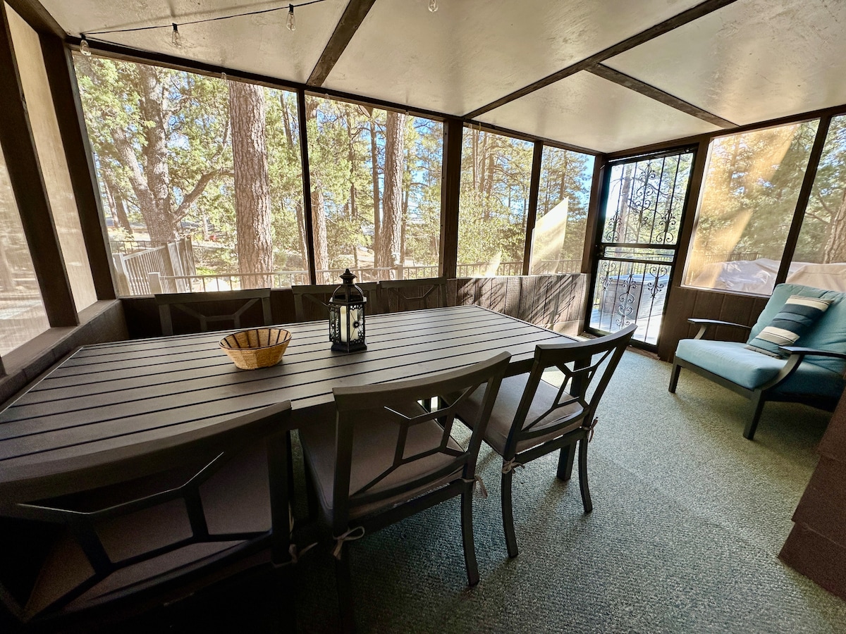 Sit in the hot tub and take in the amazing views! This is a Downstairs unit located just a short walk to Uptown Sedona. It offers a comfortable 7" queen sleeper sofa, and full over full bunkbed, with a twin trundle (sleeps 7). Full kitchen (with all the appliances and necessities you need), laundry, full bath, dining room and living room. Great space with beautiful views inside and outside. Enjoy games with the family or watch a movie after sunset . Hot tub is private to this unit only.