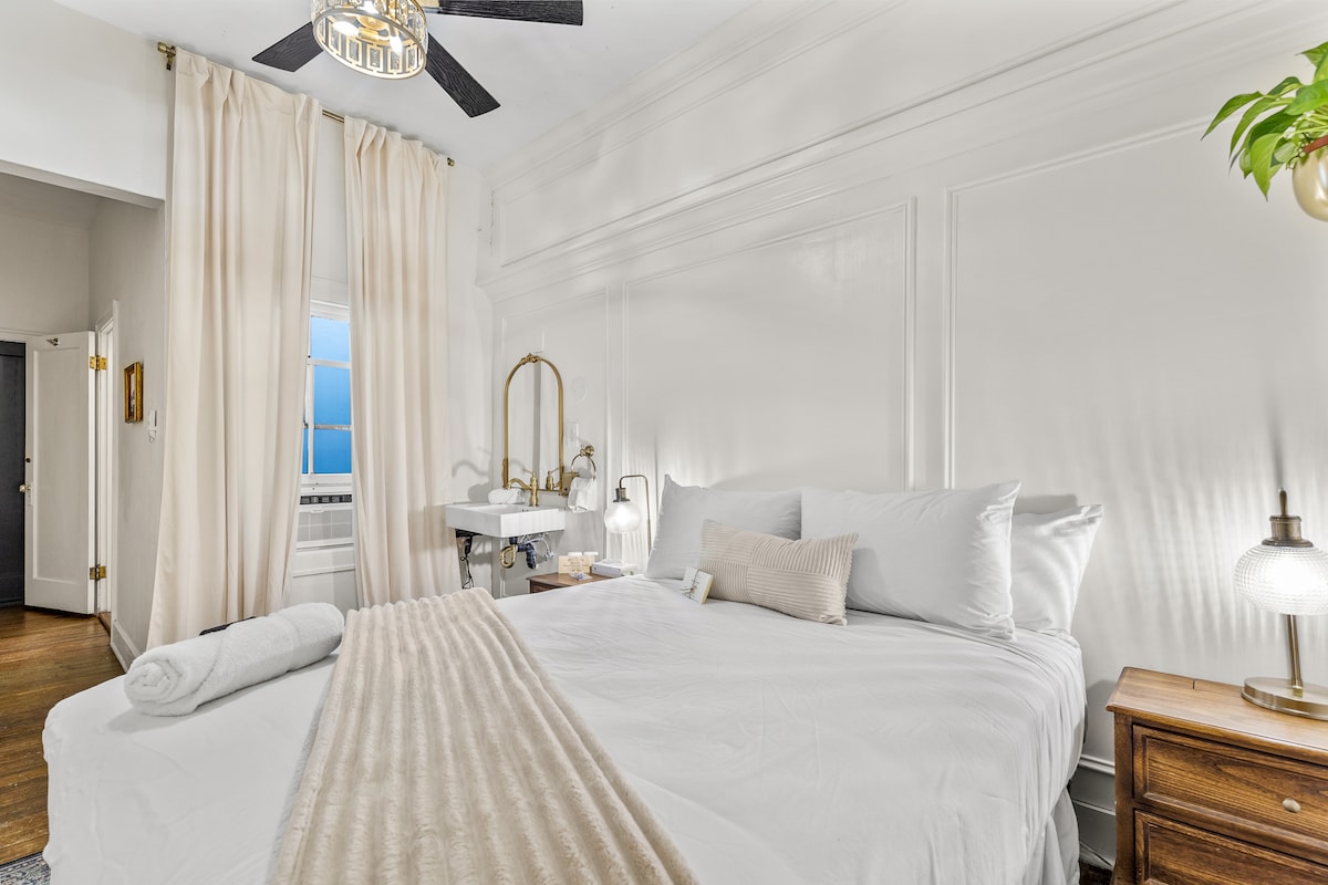 Experience the charm of our Queen Rooms, which are slightly less noisy and exceptionally cozy within our vibrant hotel setting. While no room is entirely quiet, these offer a more restful ambiance. Spacious and newly updated, they maintain the enchanting turn-of-the-century aesthetic. Each room includes a flat-screen TV, private bathroom, and is equipped with air conditioning for the warmer months. *Please see other details to note for more important info!