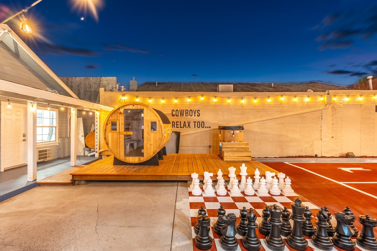 The Cowboy Social Club offers charm & convenience, step outside & you'll find yourself in a scene similar to the movie cars! This property is on Route 66. We offer amenities including: - Pickle Ball, ping pong and corn hole - Sauna, Ice Bath, & Jacuzzi - Kitchen and outdoor BBQ - Laundry - Wifi - TV's - Self Check-in The bathroom and room is completely yours and private, the amenities are shared. We have staff available that live close by if you may need any support during your stay :)