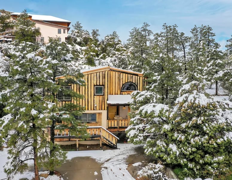 While not technically a treehouse, this log cabin is 79 steps up, sits above ground level and is surrounded by ponderosa pines! Once inside this cozy and peaceful home, you'll feel like you're in your own private treehouse. Located in Kachina Village, just 8 miles south of downtown Flagstaff, you'll get to enjoy dark skies and quiet evenings while being close to all of Flagstaff's attractions. Please note that you DO have to climb all 79 steps and cross a foot bridge over Pumphouse Wash.